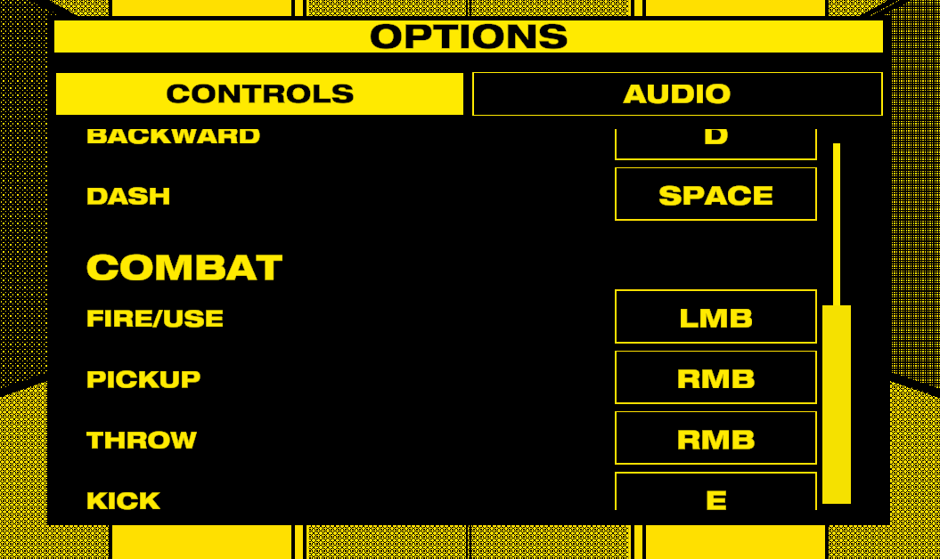 - Controls are now updated to be rebindable. Controls menu removed from main menu as they're viewable in the options